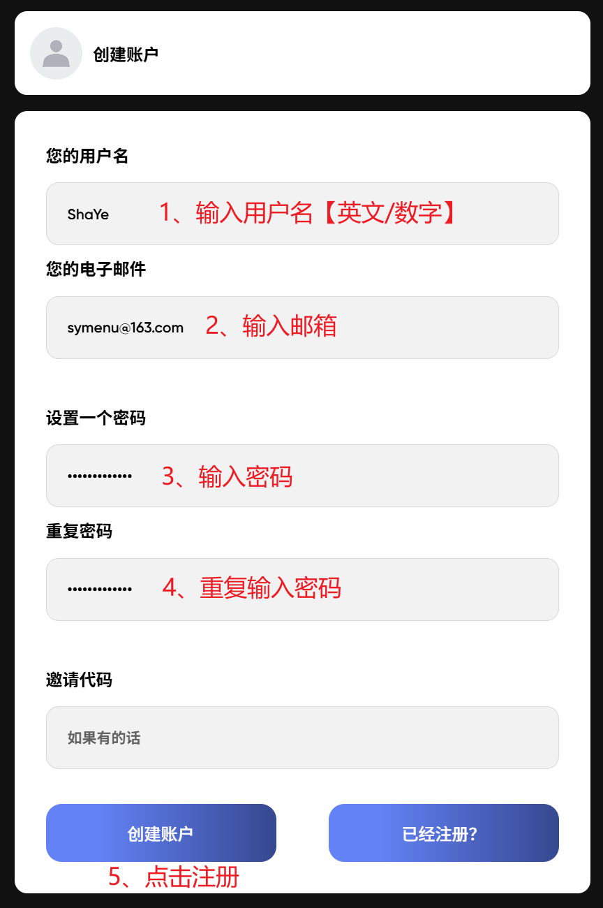 按照下图填写相关资料注册