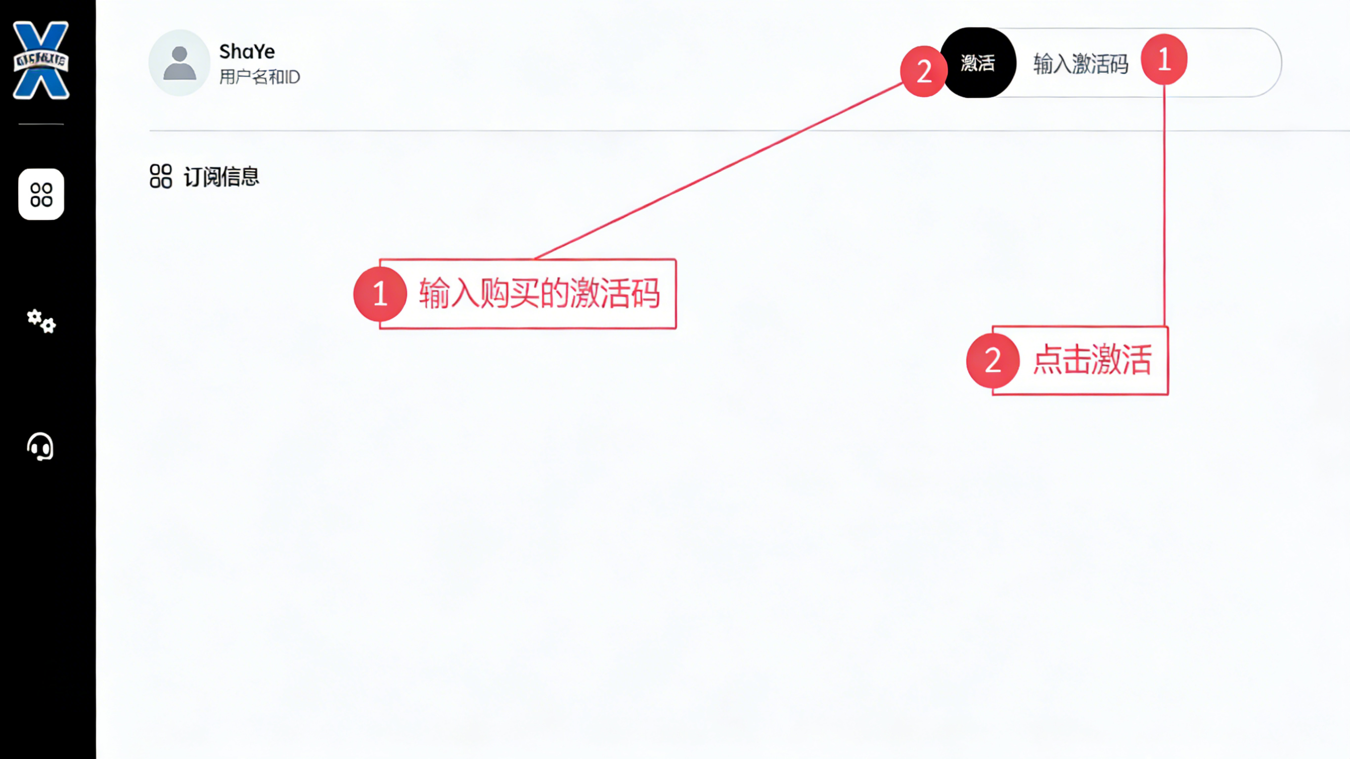 进入个人页面后,看下图输入激活码 激活账号