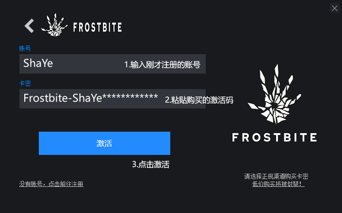 完成 注册,点击左下角激活按钮,对应输入刚注册的账号与激活码激活