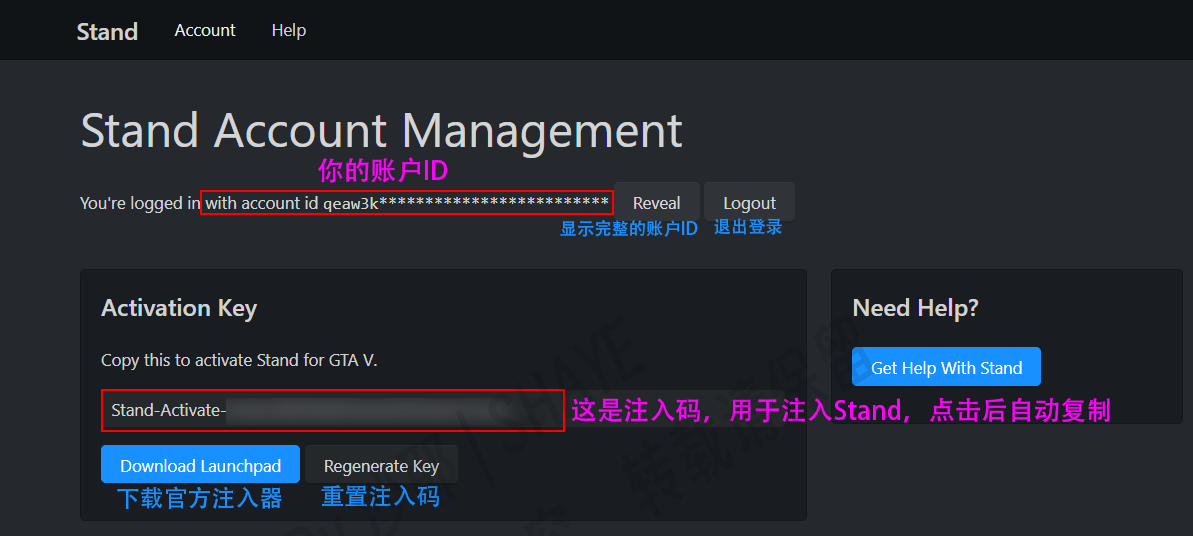 - 登陆官网用的,无法用于注入stand,自己保存好,丢失无法找回